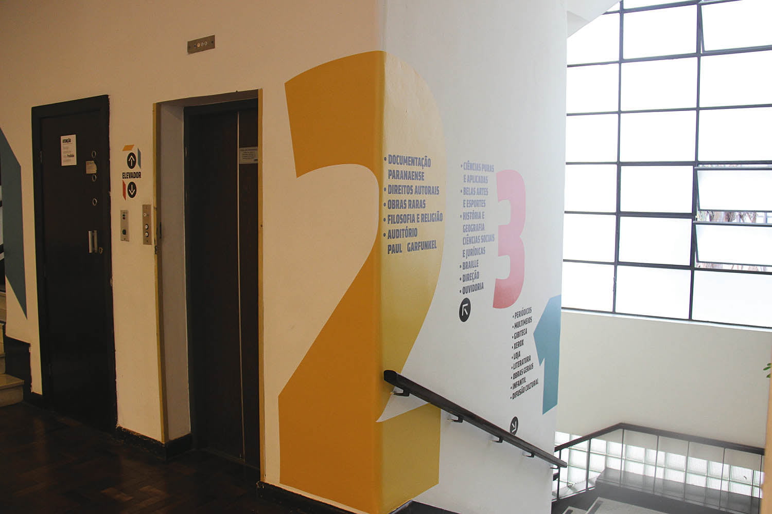 Sistema de sinalização/ Wayfinding desenvolvido pelo nosso estúdio para a Biblioteca Pública do Paraná (BPP).