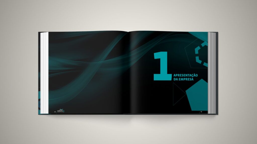 Pensado como um livro de mesa, o projeto editorial traduz visualmente a robustez, a confiabilidade e a inovação que marcam a atuação da Cateno ao longo de sua primeira década. A paleta de cores sóbria e elegante, composta por preto e tons de azul claro, reforça o caráter institucional e tecnológico da marca, ao mesmo tempo em que confere sofisticação e atemporalidade à publicação.