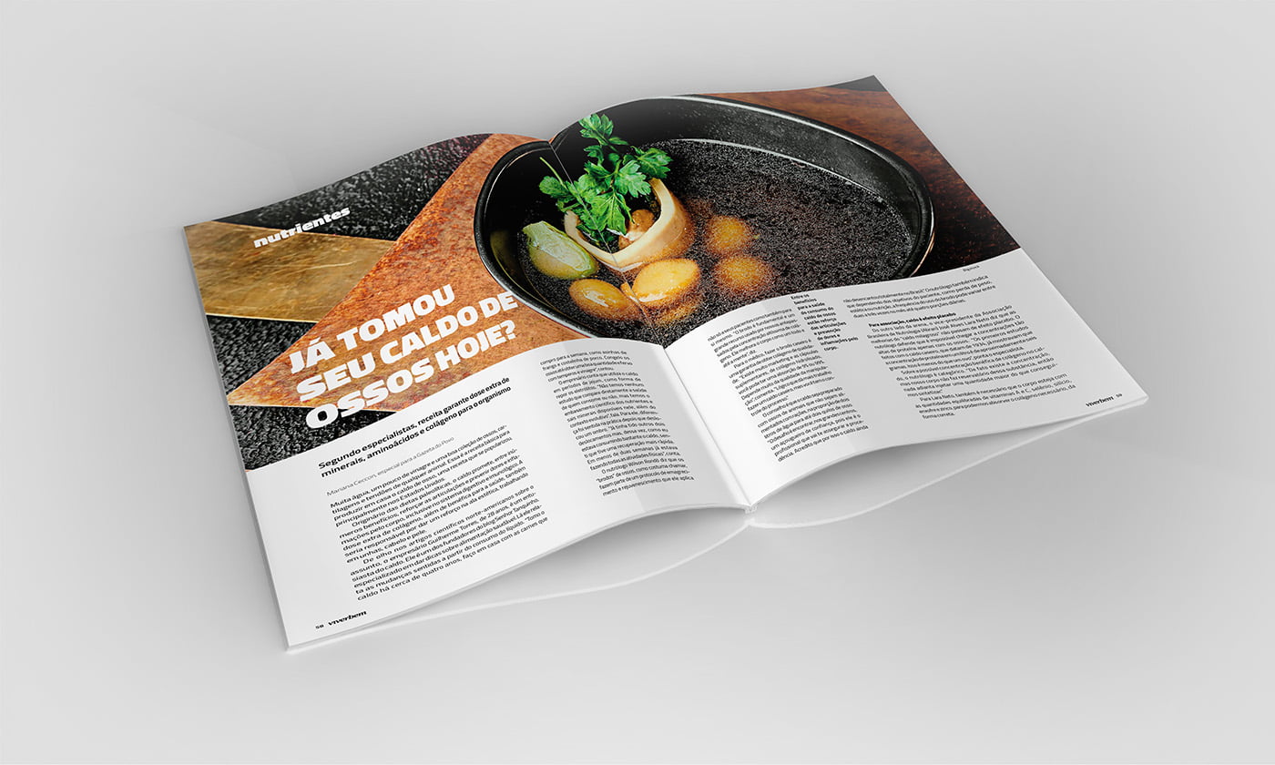 Refizemos todo o novo projeto gráfico da revista Viver Bem, da Gazeta do Povo. Usamos uma família tipográfica moderna, com um grande leque de pesos. Também criamos novas formas de entrada de leitura. A ideia foi tornar a revista mais atraente e informações com densidades e pesos diferentes. Isso cria novos níveis de leitura e oferece ao leitor formas diferentes de se informar.