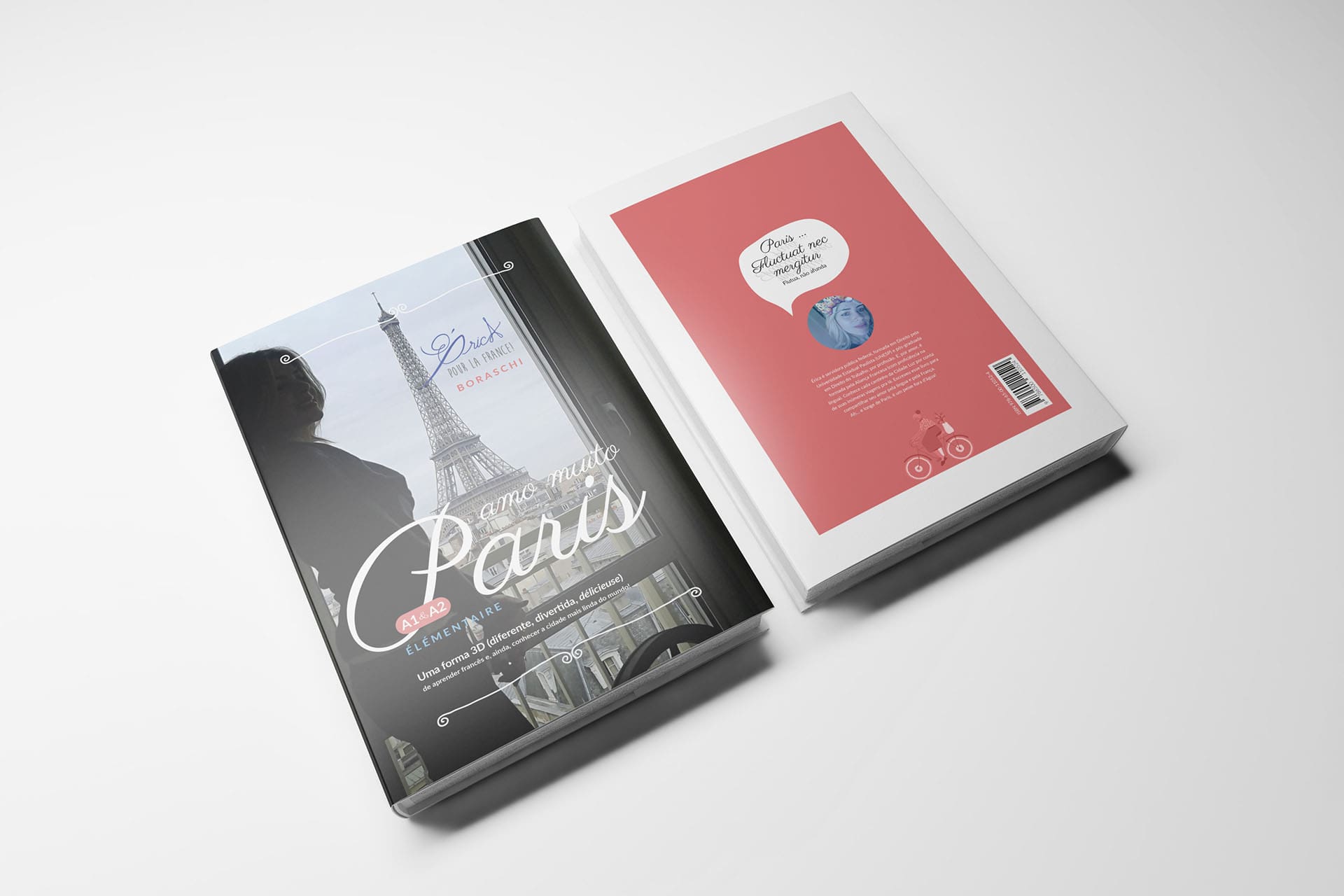 Desenvolvemos o projeto gráfico e a diagramação do livro Amo Muito Paris, da autora Érica Boraschi. O obra tem como objetivo facilitar a aprendizagem do francês e foi concebida com base jornada da autora.